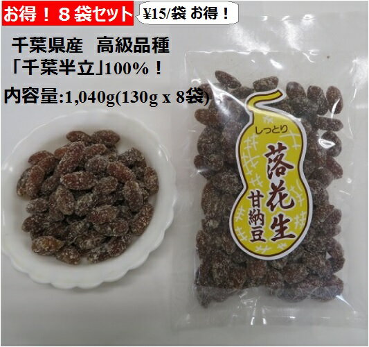 【お得!8袋パック(1,040g)】千葉県産落花生の中でも定番の高級品種『千葉半立』を100%使用、しっとり、柔らかく煮あげた美味しい甘納豆です! 【ピーナッツ 豆菓子 ギフト 千葉 国産】